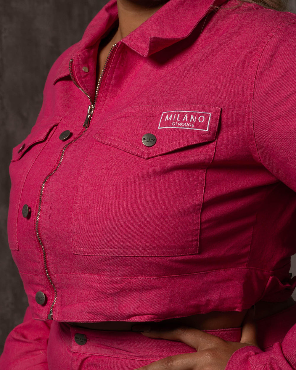 - Take on the day in style in The Cargo suit built to withstand any weather. Available in 3 colors. The Nira Cargo Jacket is cropped with a front zipper, two pockets in the front along with an elastic adjustable inside for your liken. Perfectly paired with the Nira Cargo Pants. You won't miss a beat in this jacket.