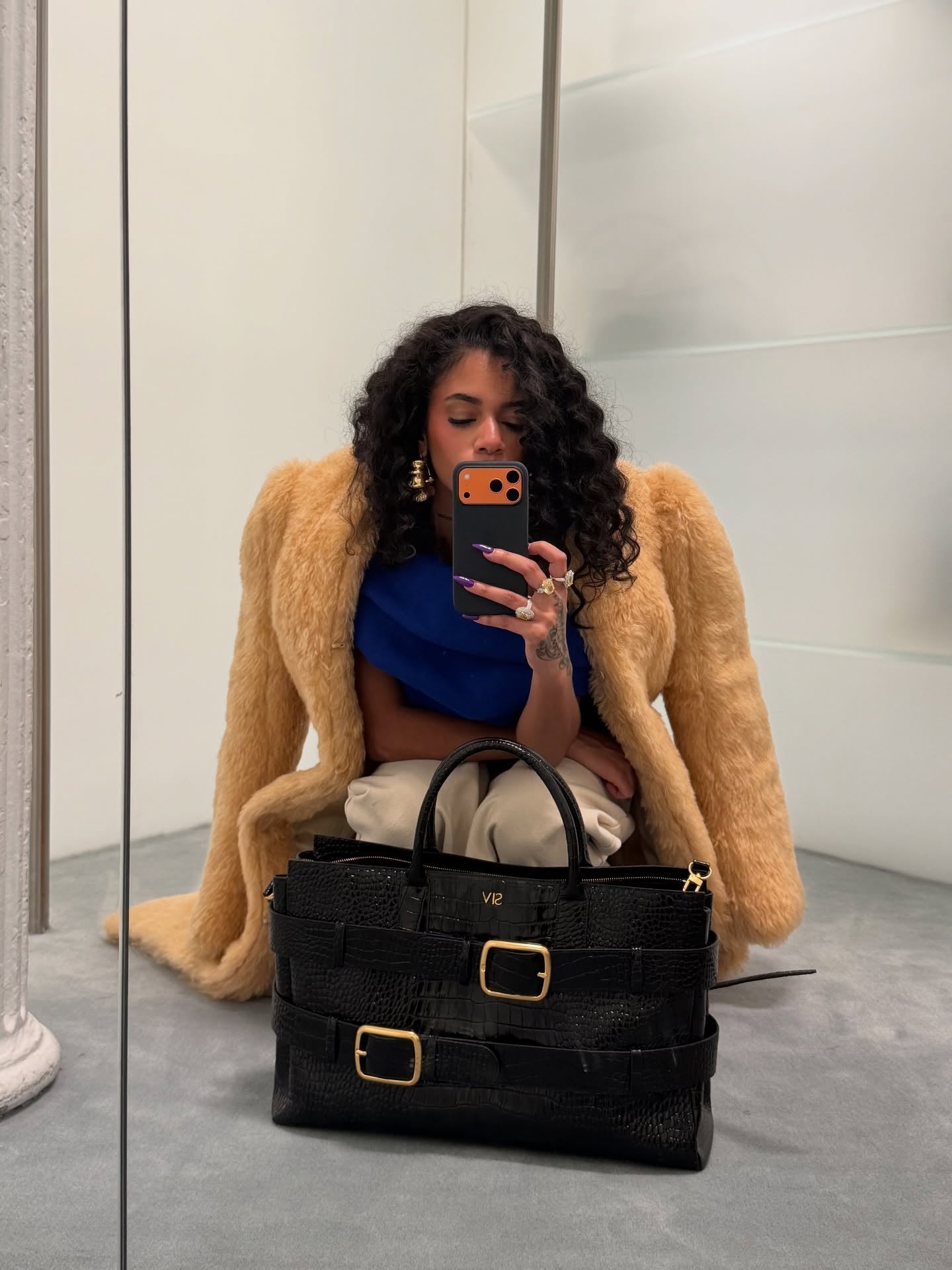 The bold, high-shine carryall redefining luxury for a new generation. Crafted in a deep purple finish, this bag delivers a sculptural look with its structured silhouette and oversized belt details with gold-tone buckles. It is unapologetically statement-making and built to stand out. Designed to hold everything you need without sacrificing style, this bag is the Gen Z Birkin. It is spacious, striking, and made for anyone who wants their accessories to speak first.