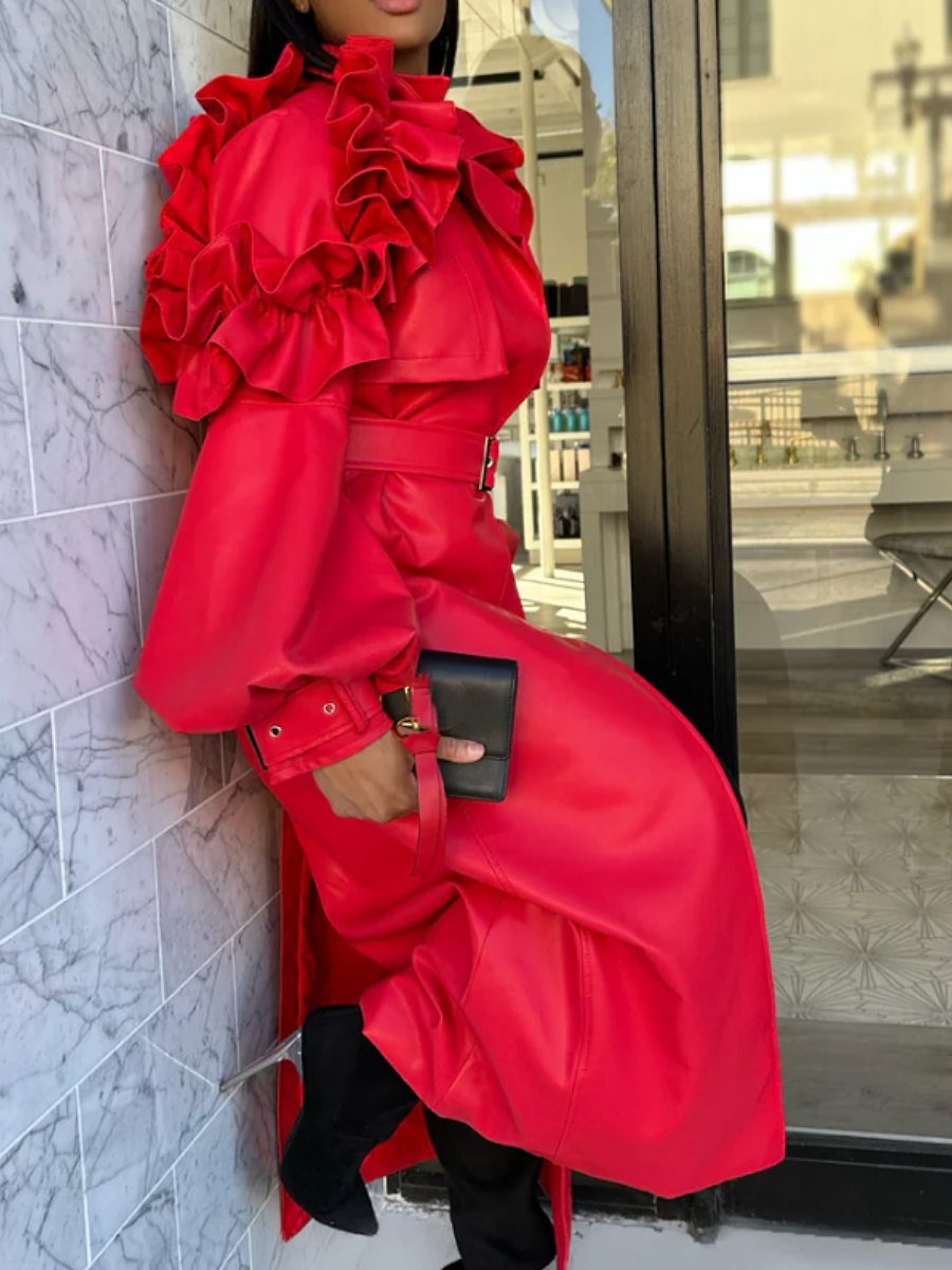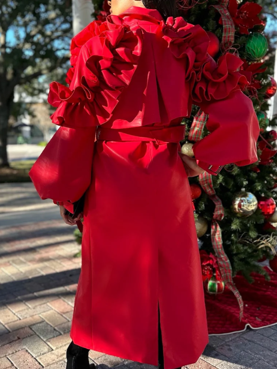 - Experience the ultimate in luxury and style with the Cherry Bomb Ruffle Coat!