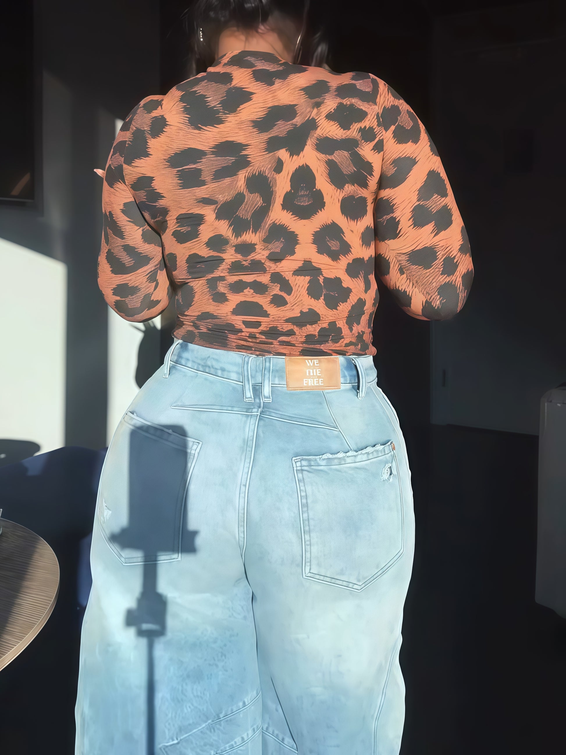 Take your bodysuits to new levels with our in-house leopard print. Constructed with a mock neckline, sleeveless design, a bodycon silhouette, thong cut in the back, and baby snap closures below. Style with denim jeans or our matching tights and headband to complete the look.